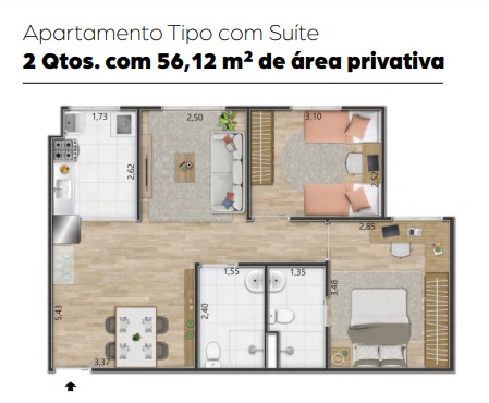 Apto de 2 quartos 56m2 (R$ 305 mil)* e de 3 quartos 69m2 (375mil)*. Em condomínio fechado; torres de 6 andares com elevador, todos com banheiro social e suite; 1 vaga de garagem; a 25 minutos do centro de Brasilia. Lazer com piscina com deck molhado, quadra de esportes, quadra de areia, churrasqueira/espaço gourmet, pet place, área de convivência (pique nique)